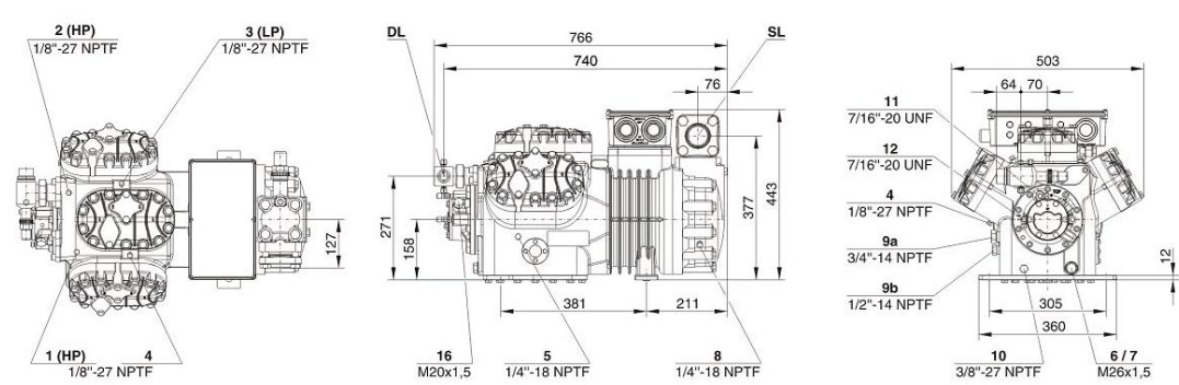 Компрессор 6HE-28Y-40P обладает современными техническими характеристиками, включая полугерметичную конструкцию, которая сохраняет целостность системы, и возможность работы с широким спектром экологичных хладагентов. Система запуска с частичной обмоткой повышает его эффективность и увеличивает срок службы, что делает его отличным вариантом для коммерческого и промышленного использования.