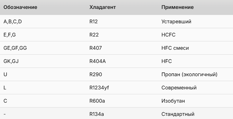 - Отсутствие буквы = R134a