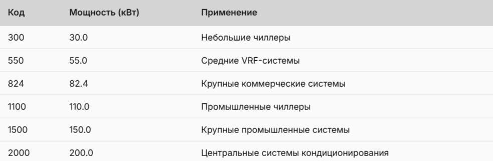 - Число указывает мощность в кВт × 10